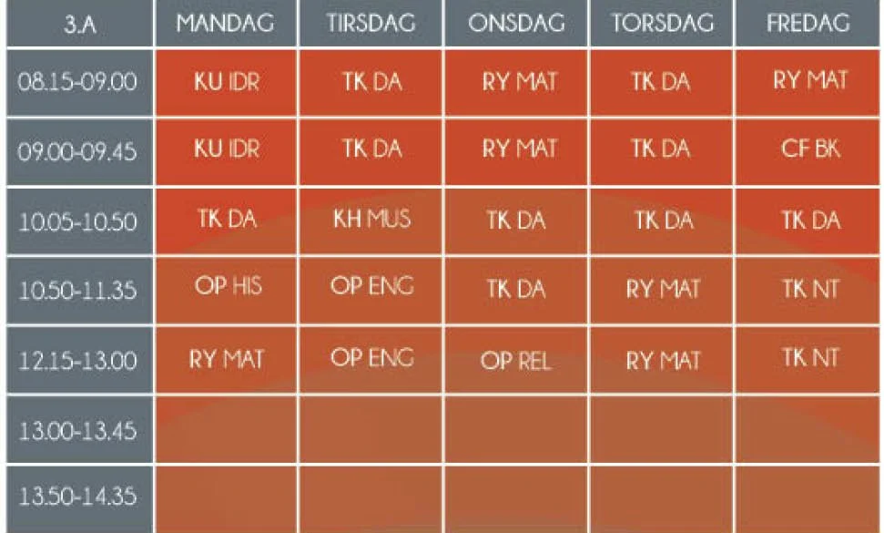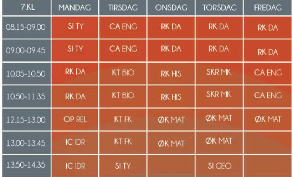 4. lektion 10.50-11.35 – stor pause: 11:35-12.15